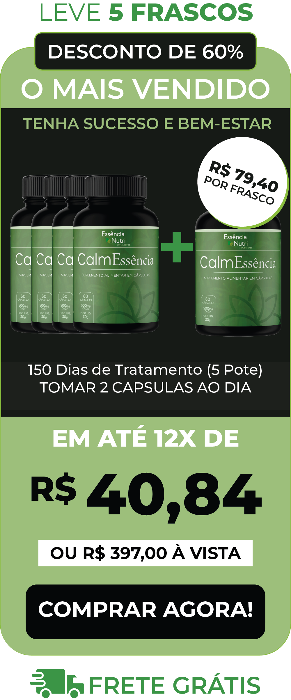 Calm Essência é o único produto no mercado que combina o poder relaxante da L – Teanina com a eficácia do L- triptofano para aliviar os sintomas da ansiedade, melhorar a qualidade do sono e promover o equilíbrio emocional, tudo de forma natural e segura.